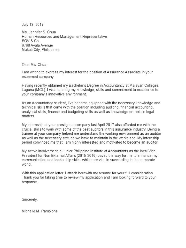 Accountant Reference Recommendation Letters 15 Samples Formats from www.wordtemplatesonline.net View a real cover letter for the kpmg internship position, accountant. Dear hiring manager's name, my name is richard sanchez, and i am a recent accounting graduate with extensive internship experience in preparing invoices, analyzing financial data, and managing payroll at fortune 500 companies. Make sure to write a unique cover letter for each internship for which you apply. Your cover letter is your introduction to a potential employer and your chance to get their attention. Internship programs are usually completed by students who want to accumulate job experience. Sample cover letter for an internship. Recruitment coordinator east capitol street, ne and 1st street, ne washington, dc 20002 While your letter needs to be customized to individual circumstances, this sample cover letter below can help an aspiring intern's cause.